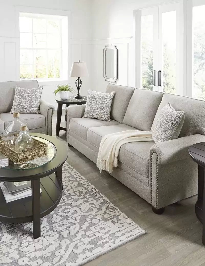 Inspired by the past but rooted firmly in the present, this sofa complements your transitional seating area. Its versatile upholstery is delightfully detailed for a subtle herringbone effect. Designer touches like decorative nail head trim and bun legs add traditional character. With this sofa’s reliable style and comfort, all you need to do is sit back and relax.