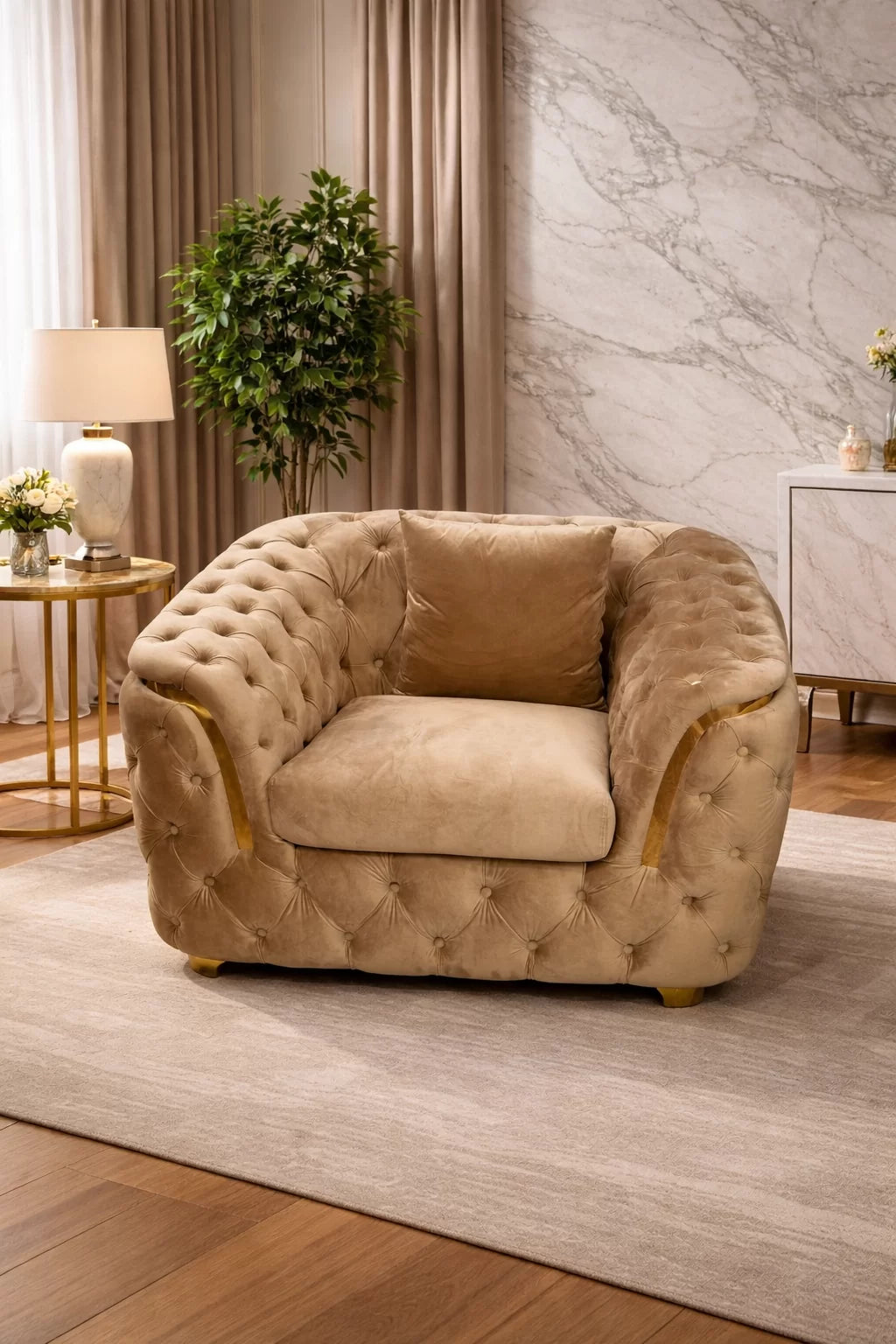 Add a touch of luxury to any room with the LUCY 1-Seater Armchair. With its timeless design velvet fabric and comfortable cushioning this statement armchair brings elegance and relaxation together in one perfect seat.